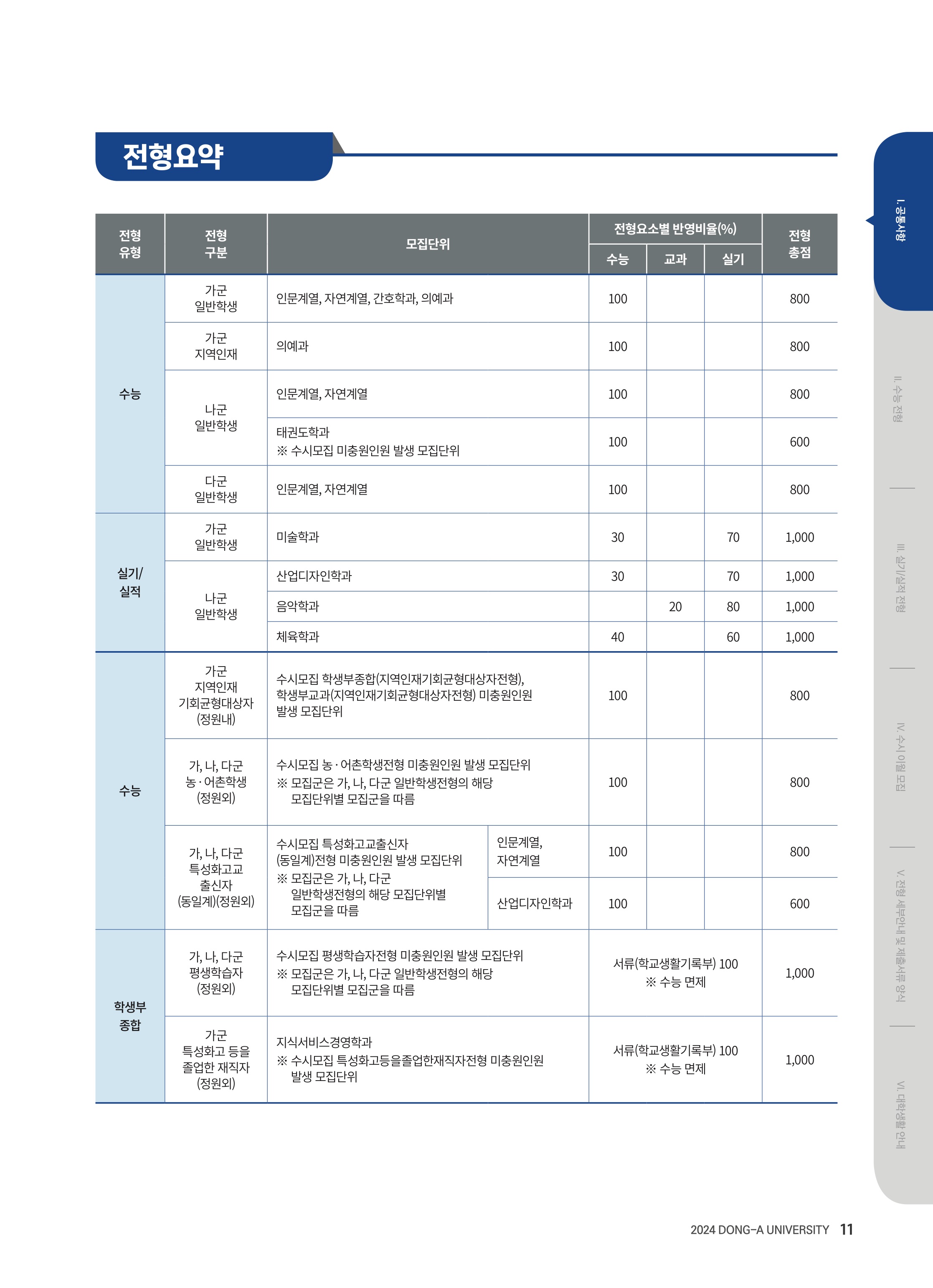 2024학년도 동아대학교 정시모집 전형요약 2023학년도 동아대학교 정시등급