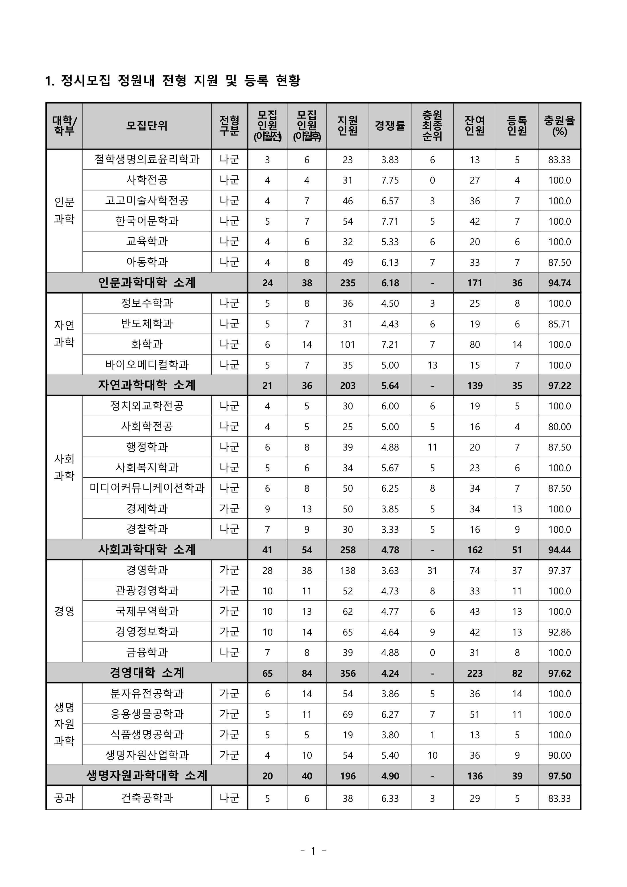 (수능)나군 철학생명의료윤리학과 6 3.83 3 514.00 800 54.17 나군 사학전공 4 7.75 0 534.00 800 68.67 나군 고고미술사학전공 7 6.57 3 517.00 800 61.00 나군 한국어문학과 7 7.71 5 519.00 800 64.67 나군 교육학과 6 5.33 6 531.00 800 68.17 나군 아동학과 8 6.13 7 515.00 800 61.33 나군 정보수학과 8 4.50 3 517.09 800 59.67 나군 반도체학과 7 4.43 5 525.00 800 61.50 나군 화학과 14 7.21 7 516.24 800 60.50 나군 바이오메디컬학과 7 5.00 13 525.21 800 60.00 나군 정치외교학전공 5 6.00 6 524.00 800 64.67 나군 사회학전공 5 5.00 5 526.00 800 67.50 나군 행정학과 8 4.88 11 529.00 800 67.50 나군 사회복지학과 6 5.67 5 523.00 800 62.50 나군 미디어커뮤니케이션학과 8 6.25 8 535.00 800 68.00 가군 경제학과 13 3.85 5 529.00 800 63.67 가군 경찰학과 9 3.33 5 530.00 800 65.33 가군 경영학과 38 3.63 30 534.00 800 66.33 가군 관광경영학과 11 4.73 8 521.00 800 65.67 가군 국제무역학과 13 4.77 6 524.00 800 58.67 가군 경영정보학과 14 4.64 9 523.00 800 64.17 가군 금융학과 8 4.88 0 515.00 800 59.17 가군 분자유전공학과 14 3.86 5 515.12 800 58.67 가군 응용생물공학과 11 6.27 7 508.00 800 52.67 가군 식품생명공학과 5 3.80 1 520.69 800 56.83 가군 생명자원산업학과 10 5.40 10 507.00 800 55.67 나군 건축공학과 6 6.33 1 526.00 800 63.00 가군 도시공학과 7 6.71 7 520.03 800 63.33 나군 건설시스템공학과 10 6.50 7 514.05 800 54.00 나군 환경안전전공 4 5.50 0 526.00 800 63.67 나군 미래에너지공학전공 9 4.67 12 513.42 800 60.33 나군 전기공학과 16 3.81 9 525.00 800 62.33 나군 전자공학과 19 4.00 13 528.63 800 59.83 가군 기계공학과 31 4.32 28 523.36 800 58.50 가군 산업경영공학과 12 5.75 10 513.00 800 57.00 가군 조선해양공학과 8 6.13 4 507.27 800 56.17 나군 화학공학과 13 4.85 14 527.15 800 66.17 가군 신소재공학과 13 5.15 12 521.21 800 63.67 나군 건축학과 8 4.88 4 532.24 800 67.17 가군 패션디자인학과 5 7.00 3 523.30 800 63.50 나군 조경학과 8 5.63 4 512.00 800 55.67 가군 식품영양학과 10 4.60 11 514.00 800 57.17 가군 의약생명공학과 12 5.08 9 527.33 800 65.17 가군 건강관리학과 8 3.38 3 511.00 800 59.33 나군 글로벌비즈니스학과 9 5.44 7 527.00 800 64.17 나군 영미학과 10 5.50 9 523.00 800 62.00 가군 중국학과 7 6.14 7 519.00 800 59.67 가군 일본학과 6 7.17 4 523.00 800 64.00 가군 컴퓨터공학과 15 3.80 21 530.51 800 64.17 가군 AI학과 10 4.00 10 527.18 800 63.17 가군 석당인재학부 11 3.45 9 535.00 800 67.83 가군 간호학과 27 4.15 11 552.60 800 75.33 가군 의예과(일반학생) 9 7.78 12 607.00 800 97.33 가군 의예과(지역인재) 10 4.00 3 606.00 800 98.00 2022학년도 동아대학교 정시등급도 읽어보세영.🥰